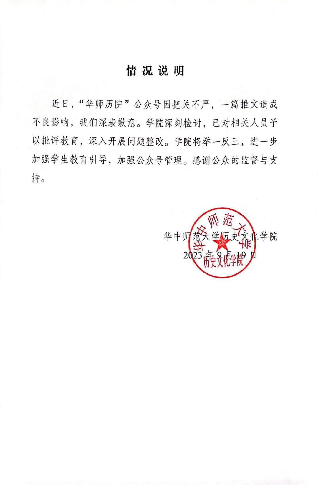 華中師范大學歷史文化學院將某生自編“諧音梗”詩句誤當成《詩經》內容引用