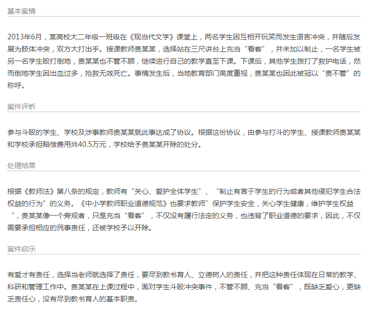 高校教師在課堂斗毆中充當(dāng)“看客”被開除并承擔(dān)賠償責(zé)任