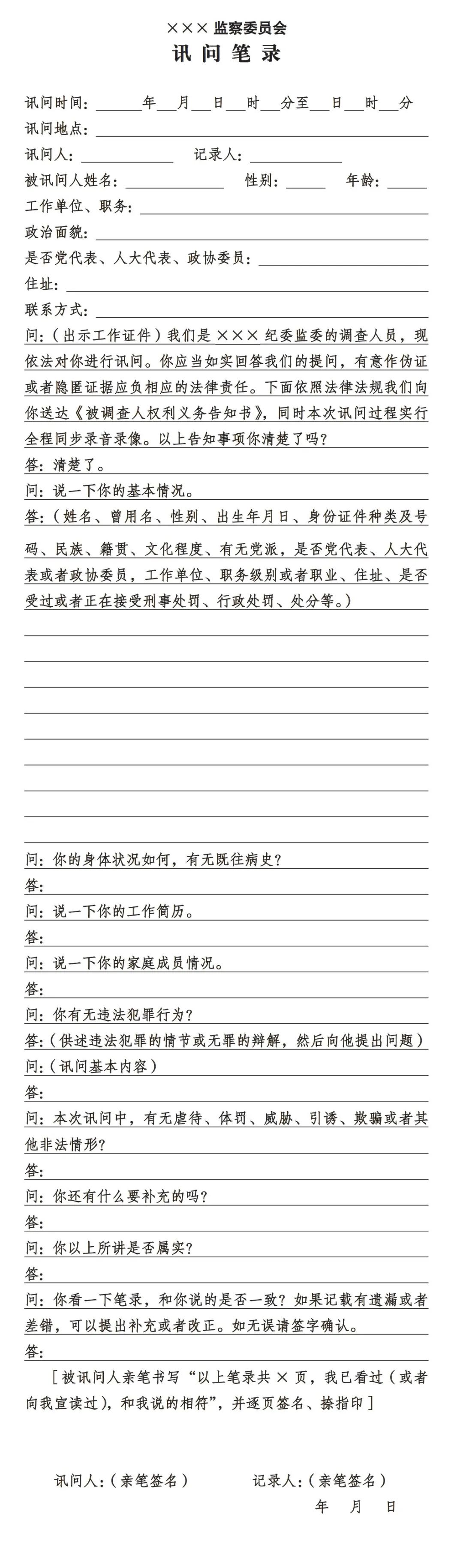 訊問筆錄模板