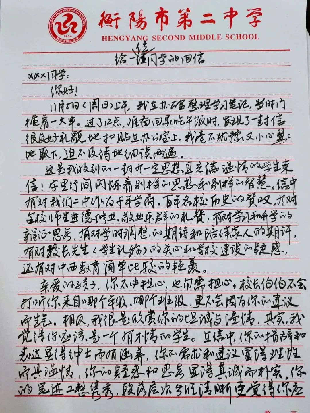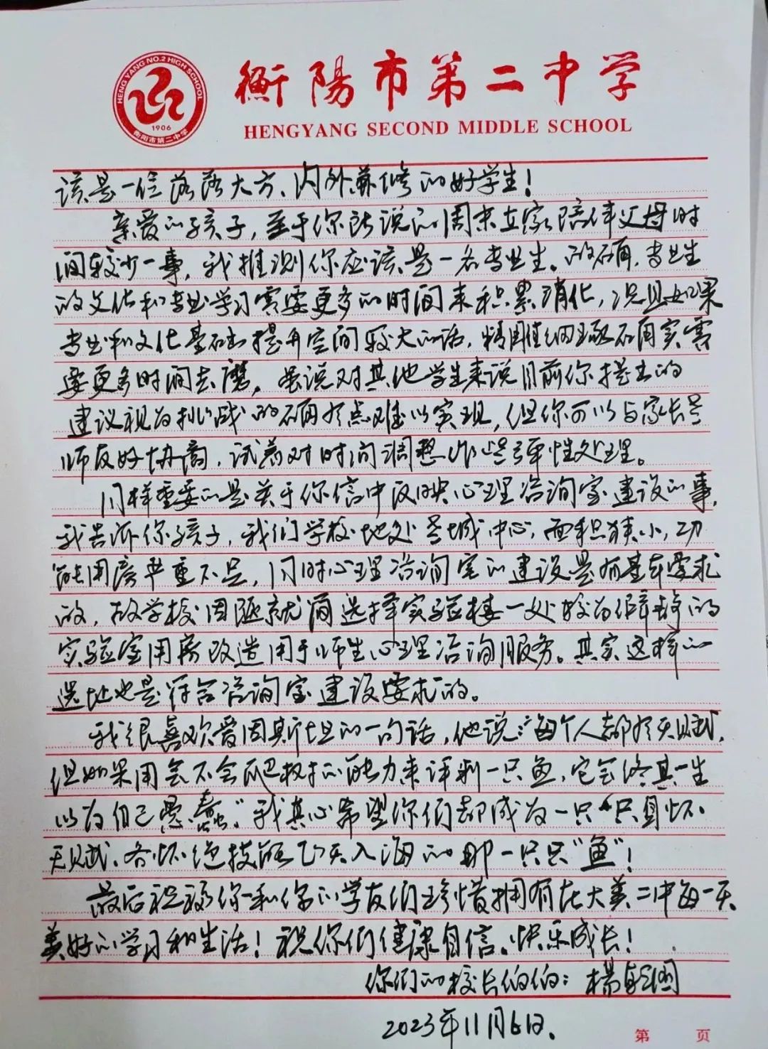二中書記、校長楊乾國的手寫信,太暖心!
