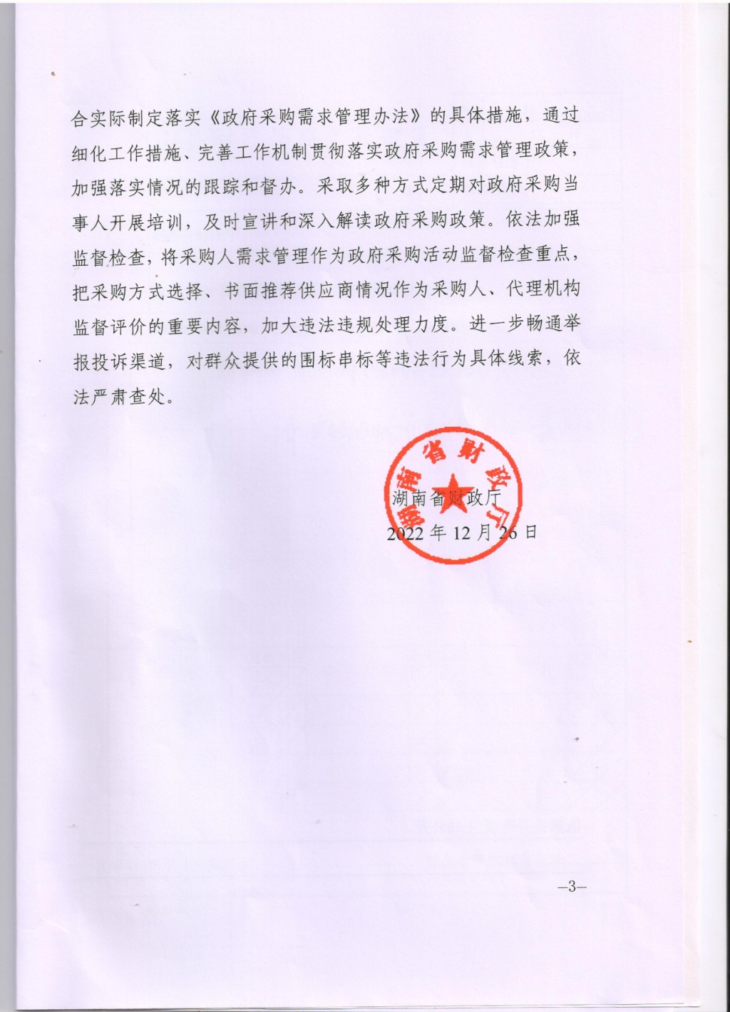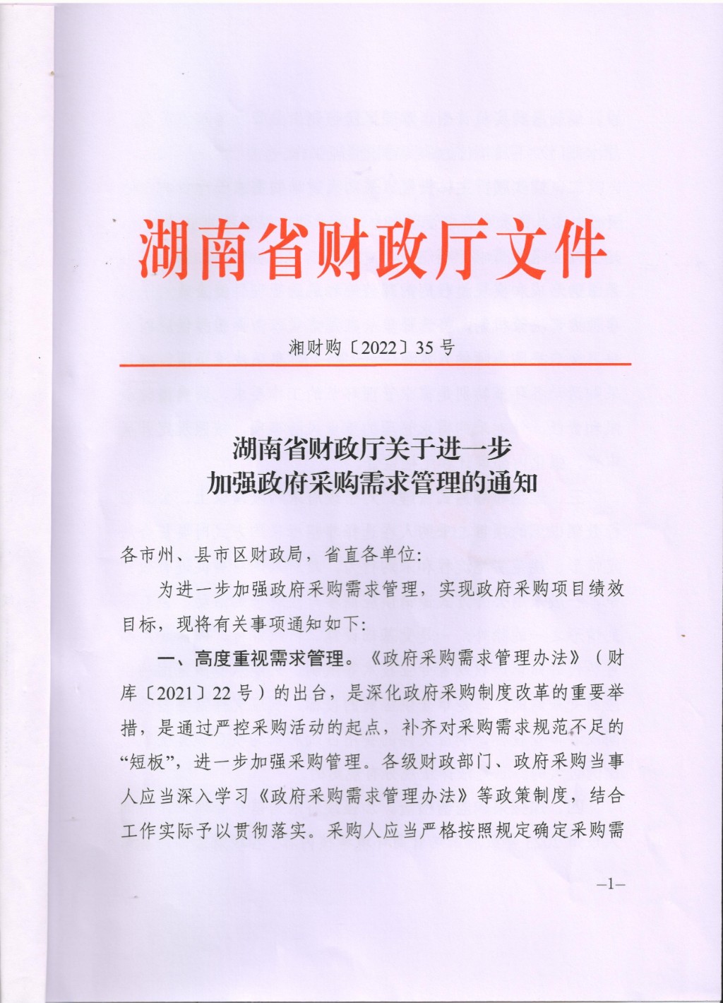 湖南省財(cái)政廳關(guān)于進(jìn)一步加強(qiáng)政府采購需求管理的通知