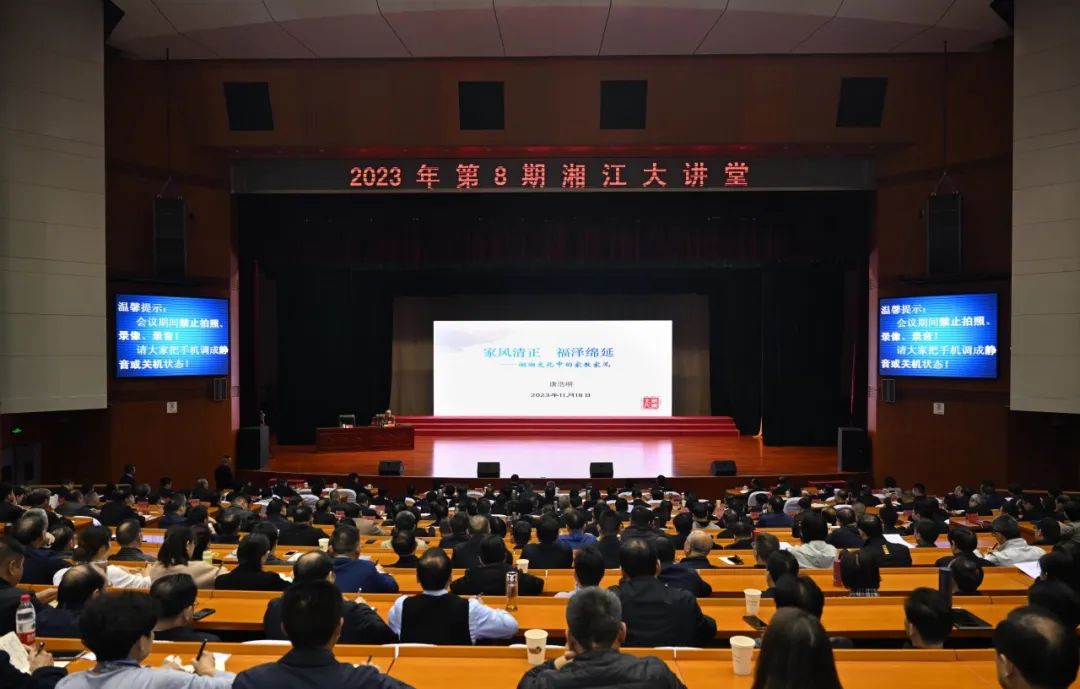 11月18日,2023年第8期“湘江大講堂”在省委黨校舉行。省作協名譽主席唐浩明以《家風清正 福澤綿延——湖湘文化中的家教家風》為題,從湖湘地區家教家風特點出發,為現場黨員干部講授了一堂內容翔實、生動有趣的家風教育課。