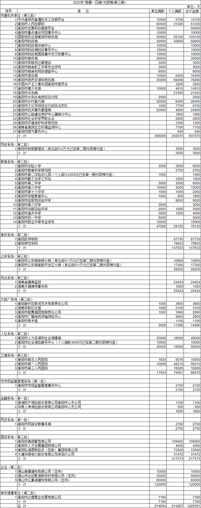 2023年“慈善一日捐”光榮榜(第三期)