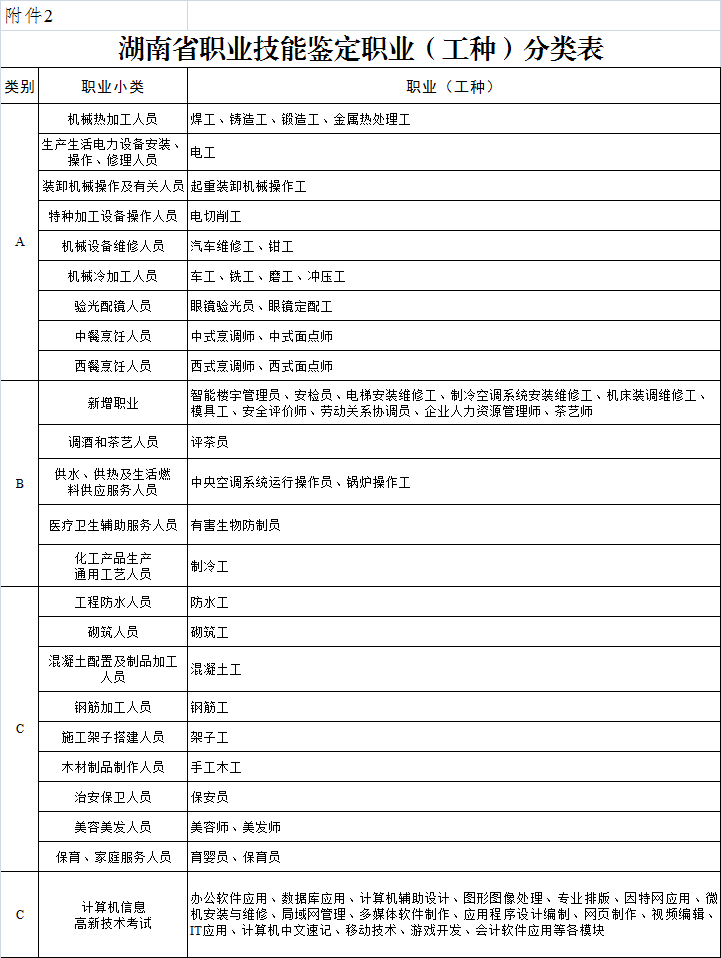 2.湖南省職業技能鑒定職業(工種)分類表