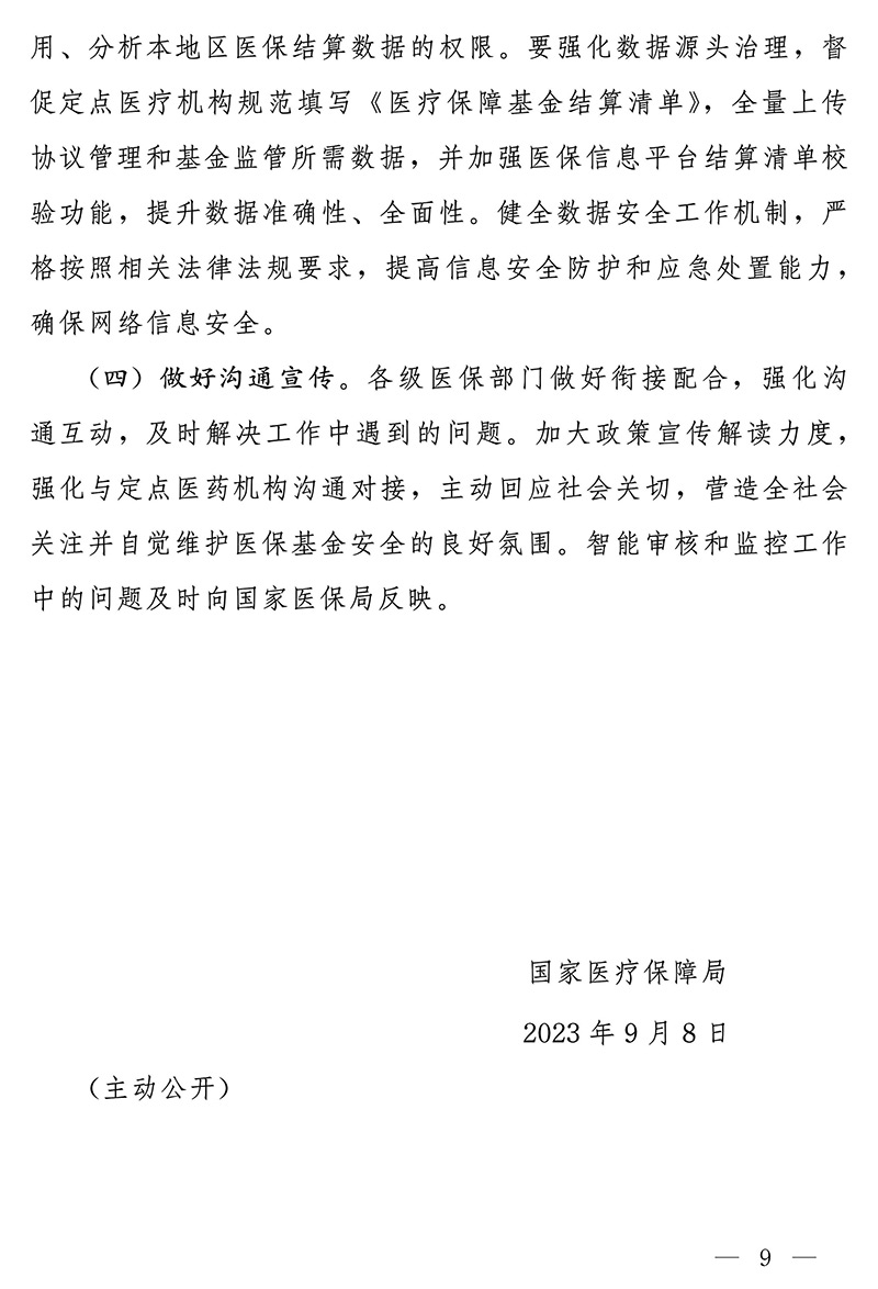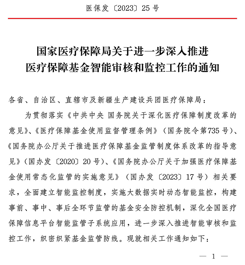 國家醫(yī)療保障局關(guān)于進(jìn)一步深入推進(jìn)醫(yī)療保障基金智能審核和監(jiān)控工作的通知