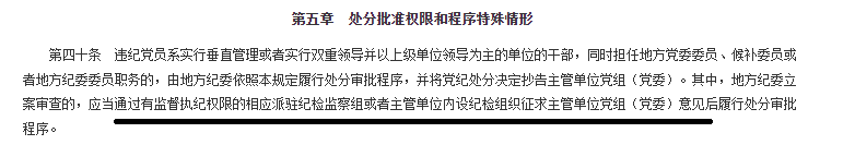 但如果上述黨員干部擔(dān)任地方黨委委員、候補委員或者地方紀(jì)委委員職務(wù),無論按照哪種方式進(jìn)行審查調(diào)查,均應(yīng)按照《中國共產(chǎn)黨處分違紀(jì)黨員批準(zhǔn)權(quán)限和程序規(guī)定》第40條規(guī)定,由地方紀(jì)委履行處分審批程序。
