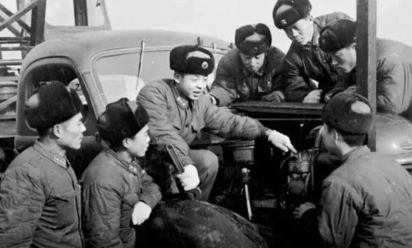 ▲雷鋒向戰友介紹汽車節油的經驗。(左三為雷鋒)