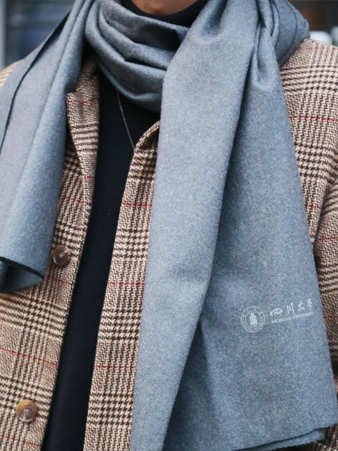 低調(diào)沉穩(wěn)、嚴(yán)謹(jǐn)務(wù)真的深灰鋪底,并將川大校徽印在圍巾一側(cè),就像百年川大的莊嚴(yán)樸實(shí)。基本款干凈簡(jiǎn)約又百搭,無(wú)論是搭配外套還是毛衣,都能輕松hold住,溫暖又時(shí)尚。