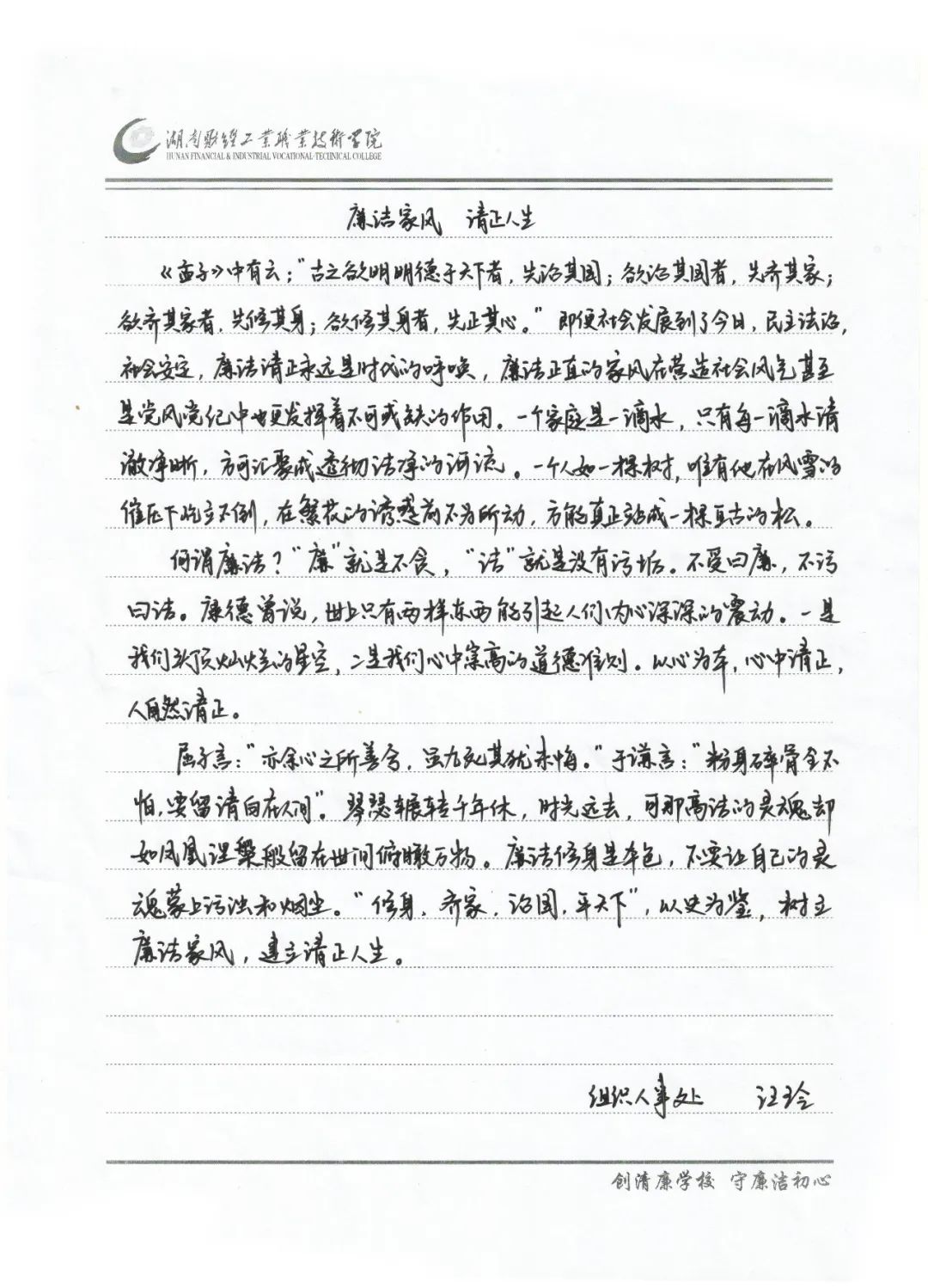 湖南財工院“創清廉學校 守廉潔初心”廉潔文化作品