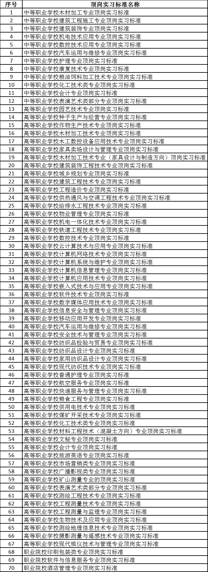 教育部辦公廳關于公布首批《職業學校專業 (類)頂崗實習標準》目錄的通知