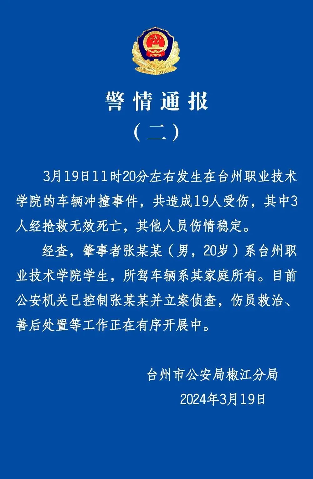 臺(tái)州職業(yè)技術(shù)學(xué)院汽車撞人事件已致3死16傷