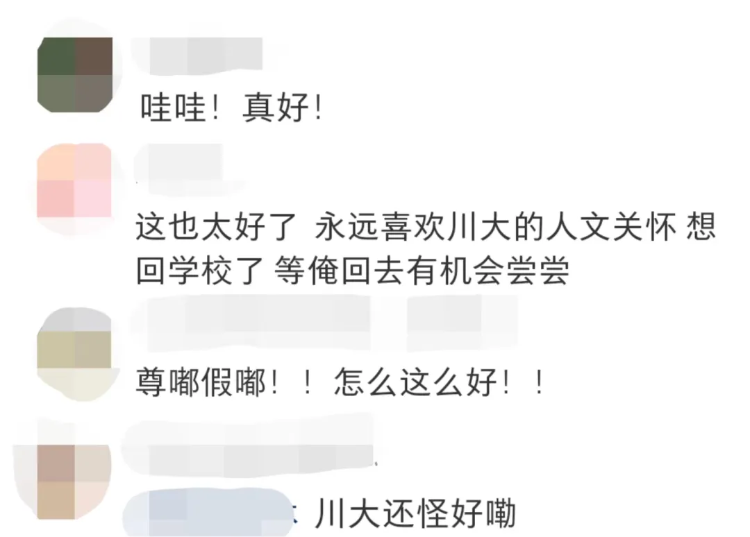 平等溝通、及時反饋 這是飲食服務中心得到大家好評的關鍵原因 川大的人文關懷 從不僅僅體現在對學生學習的幫助上 還體現在生活中的方方面面 長期關注師生們的需求 爭取照顧到每一個人 暖心的川大 還會一直這樣暖下去!