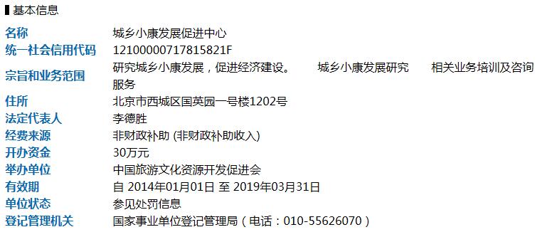 經查,中國旅游文化資源開發促進會舉辦的城鄉小康發展促進中心存在不按照登記事項開展活動,違規設立、使用帶有“全國”、“國際”和“中國”等字樣機構對外開展工作,未按規定及時申請變更登記住所,以“人力資源社會勞動就業培訓中心”名義對社會大肆發放多種技能證書牟利,涉及彩票項目合同詐騙,在網站對外虛假宣傳,地方分中心及其所辦企業違法違規問題頻發等行為,嚴重偏離公益屬性,侵害人民群眾權益,影響社會秩序穩定,依據《事業單位登記管理暫行條例實施細則》第七十條規定,決定對城鄉小康發展促進中心撤銷登記并收繳《事業單位法人證書》及單位印章。
