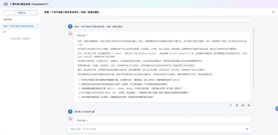 滿血版DeepSeek大模型與學校“服務邊疆,對接東盟”的辦學定位高度契合。學校以此為契機,打造面向東盟國家語言的教育培訓大模型,提升國際化辦學質量,為培養復合型國際人才注入全新科技動力。