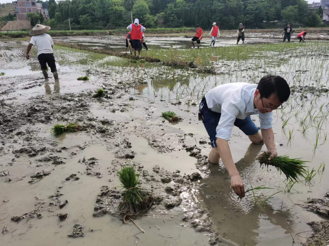 大坪塘鎮(zhèn)黨委書記唐志堅帶頭在田間幫農(nóng)戶插秧