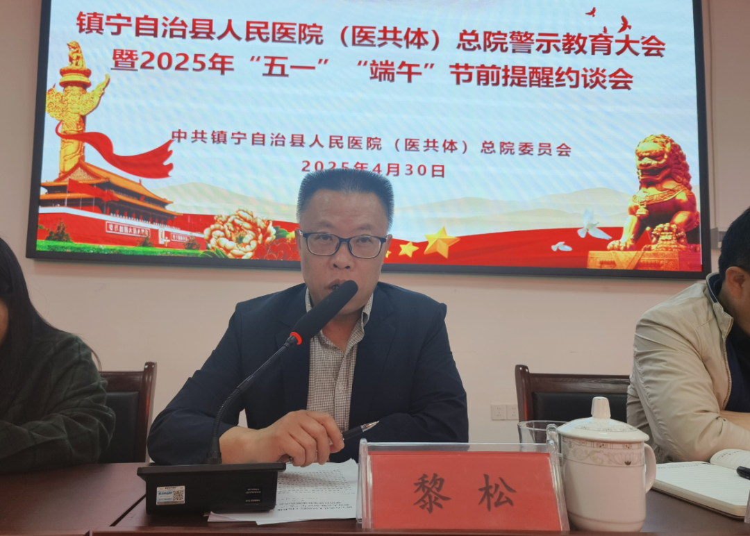 4月30日下午,鎮(zhèn)寧自治縣人民醫(yī)院醫(yī)共體組織召開(kāi)廉潔自律警示教育大會(huì)暨2025年“五一”“端午”節(jié)前集體提醒談話(huà)會(huì)。此次會(huì)議,旨在進(jìn)一步嚴(yán)明全院干部職工“五一”“端午”節(jié)日期間的廉政自律要求,推動(dòng)深入貫徹中央八項(xiàng)規(guī)定精神學(xué)習(xí)教育走深走實(shí),持續(xù)營(yíng)造風(fēng)清氣正節(jié)日氛圍。醫(yī)共體領(lǐng)導(dǎo)班子成員、各醫(yī)共體成員單位負(fù)責(zé)人、各黨支部書(shū)記、各科室主任、護(hù)士長(zhǎng)參加了此次會(huì)議,會(huì)議由醫(yī)共體黨委副書(shū)記、縣人民醫(yī)院院長(zhǎng)劉賢奎同志主持。