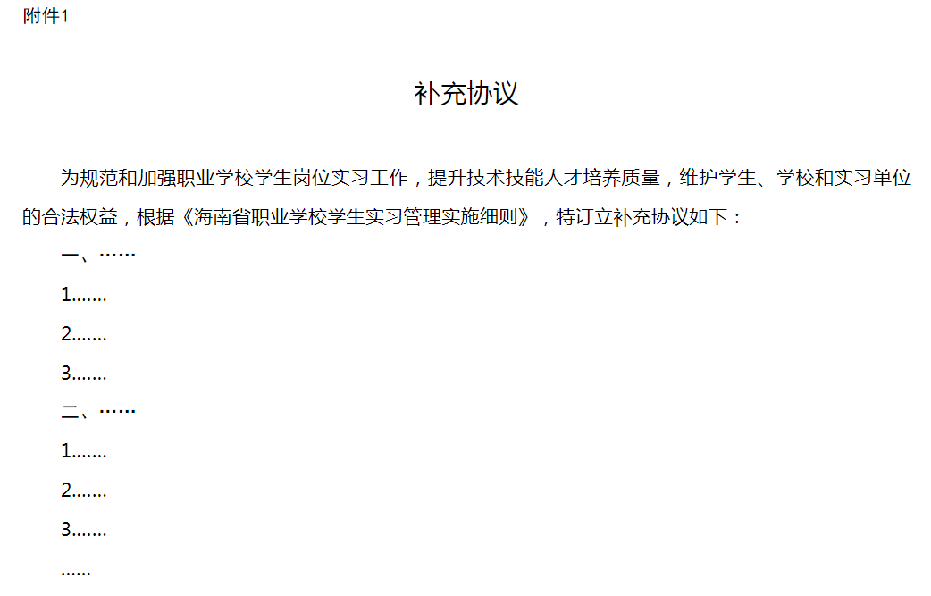 第十四條??學生參加崗位實習前,職業學校、實習單位和學生三方必須以教育部等部門發布的實習協議范本為基礎簽訂實習協議,實習協議示范文本不得刪減,可以附件形式增添有關條款。協議文本由當事方各執一份,并依法嚴格履行協議中有關條款。自主實習學生與學校統一安排實習學生應簽訂同一版本的《實習協議》。