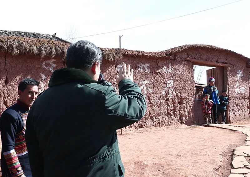 離開村子時,有兩個彝族小朋友大聲喊道:“習爺爺,再見。”習近平向他們揮揮手說:“小朋友,再見。”