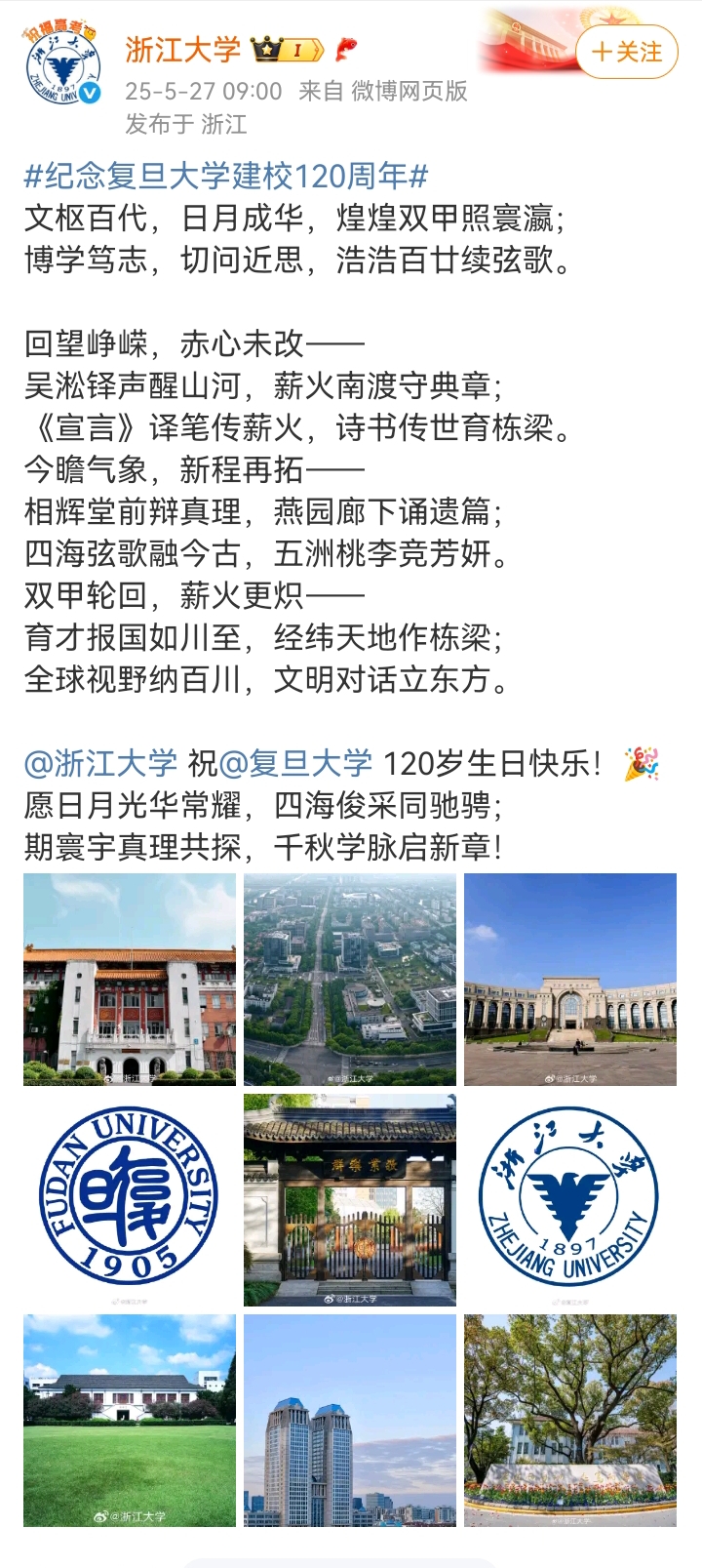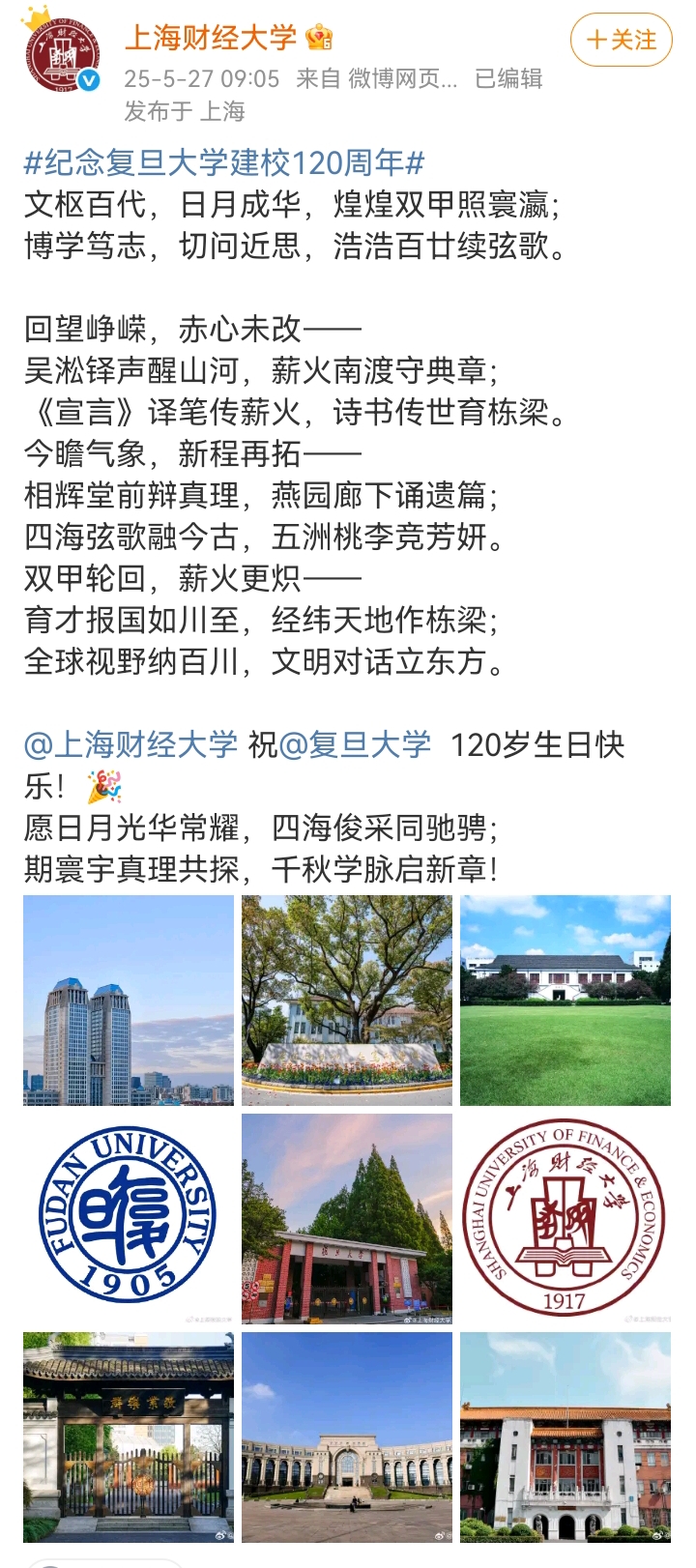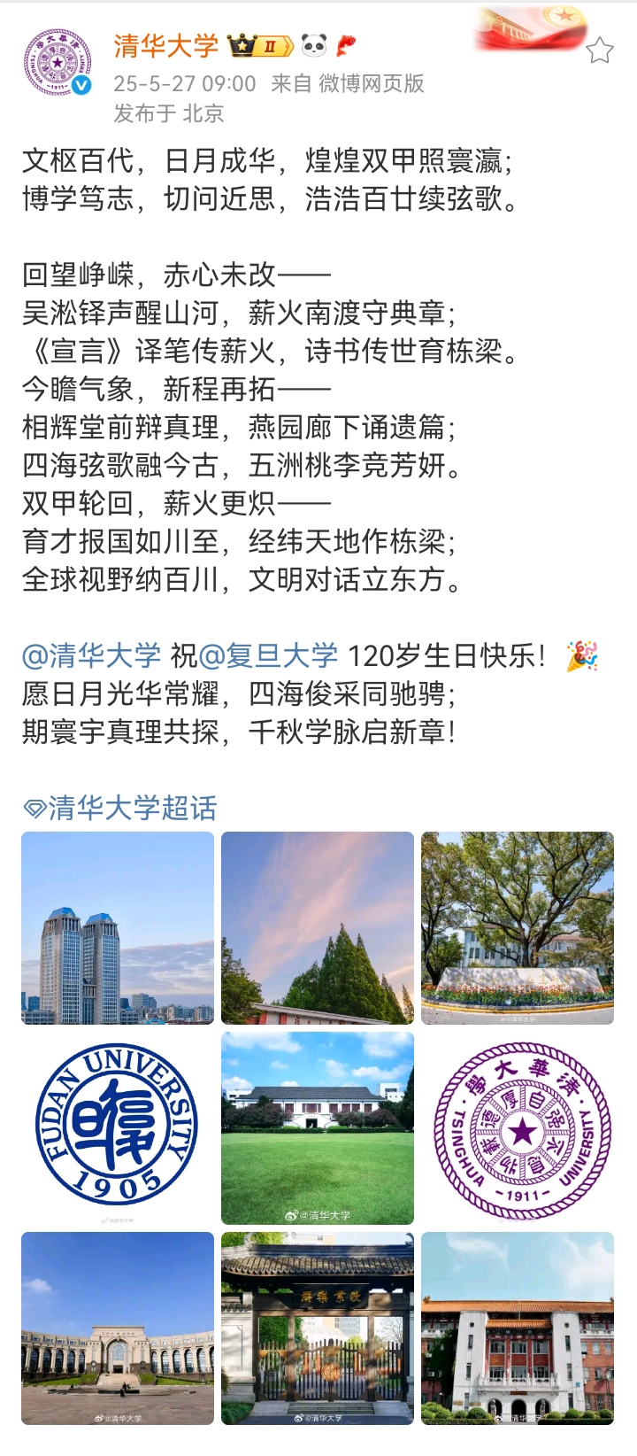 多校給復旦120周年校慶的賀文,竟然像復制粘貼!
