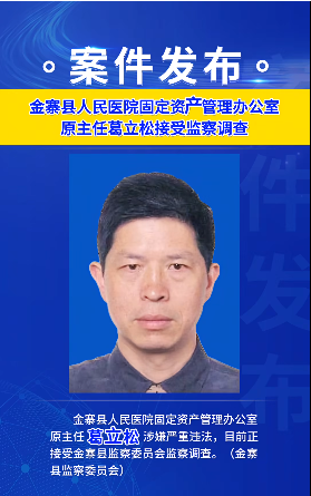 金寨縣人民醫院固定資產管理辦公室原主任葛立松涉嫌嚴重違法,目前正接受金寨縣監察委員會監察調查。