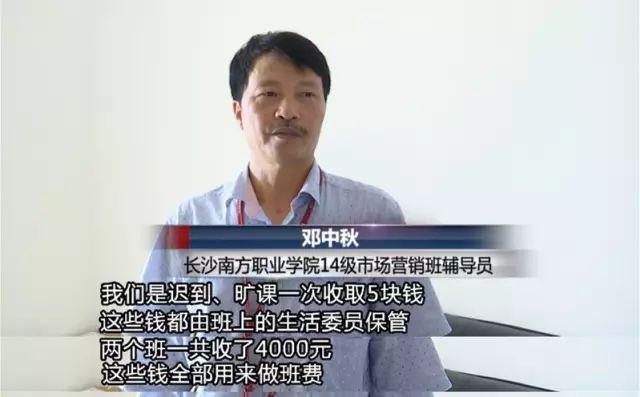 記者從學生們口中得知,向學生收罰款的是長沙南方職業學院2014級市場營銷班輔導員鄧中秋,班級QQ群中名為“鄧老師”的人正是他。對于學生們的質疑,這位鄧老師是這么說的。