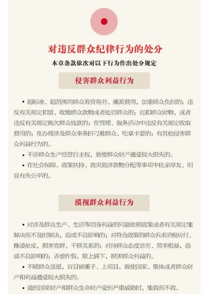 第一百二十條 有其他違反群眾紀律規定行為的,應當視具體情節給予警告直至開除黨籍處分。