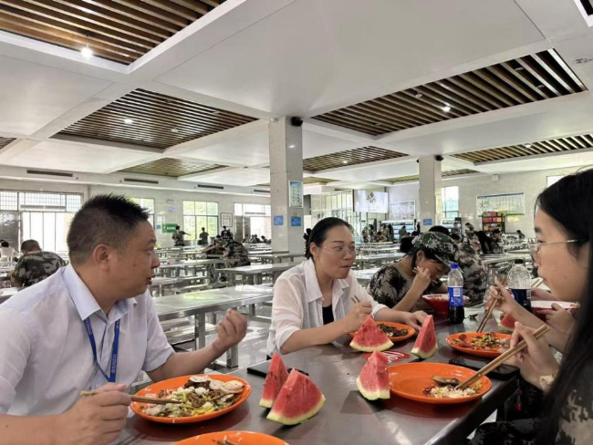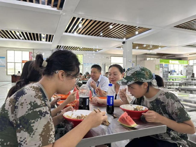 座談結束后,龐海英院長與朱清如書記一同來到學生食堂,與少數民族同學們共進午餐。“你們平時喜歡吃什么口味的菜?食堂的菜品搭配是否符合飲食習慣?有沒有需要特別注意的口味禁忌?”朱清如書記走到餐臺前,一邊為同學們添菜,一邊細致詢問飲食適應情況。