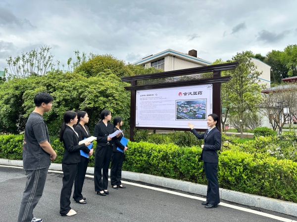 調研期間,學院文旅團隊先后參觀了古漢中醫藥工業旅游景區、中醫藥文化展廳、古漢堂中醫館及特色康養園區等,系統了解古漢醫藥發展歷程,沉浸式感受中醫藥文化從傳統炮制到現代康養的傳承與創新,實地辨識道地藥材、學習康養知識,深入了解古漢養生精等老字號產品的研發與文旅轉化路徑,探討中醫藥文化IP創新傳播模式。
