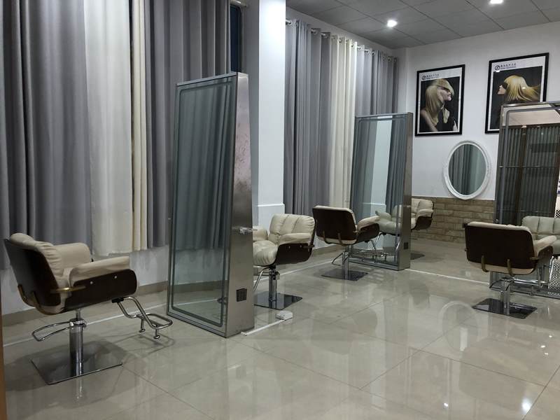 美發實訓室位學院圖書館一樓,教室配有22個獨立插孔,2張頭模架桌,6臺獨立雙面鏡,12個燙染工位,并配有觸摸式一體化教學設備。主要針對美發與形象設計專業學生美發項目的練習:美發修剪、美發卷杠、盤發造型、美發燙染等。