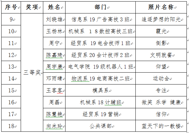 “發現文明、記錄文明”和“我心中最美的校園”攝影比賽結果具體如下: