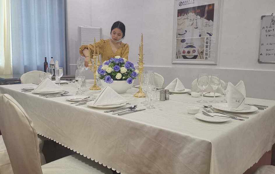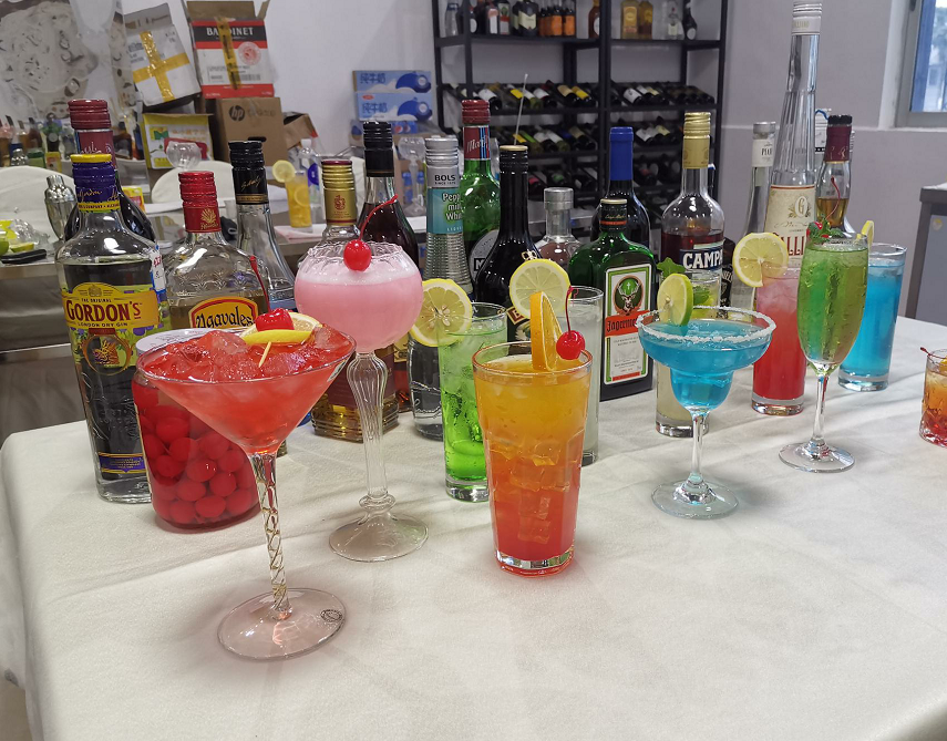 西餐實訓室主要面向酒店管理專業學生,擁有西餐宴會餐桌椅、西餐全套餐具、咖啡機、冰柜、制冰機、操作吧臺、酒柜、調酒工具等設備,并配備西餐服務、咖啡制作、雞尾酒調制相關實訓耗材。本實訓室可完成《餐飲服務與管理》、《酒水知識》等課程的教學任務,通過營造仿真教學環境,訓練學生實踐技能。使學生熟悉西餐服務、酒水服務的基本內容、要求和服務流程,掌握西餐宴會擺臺、西餐主題宴會設計、咖啡制作、雞尾酒調制、自創雞尾酒等技能和技巧,培養學生的實踐能力和職業素養,培養學生綜合分析問題解決問題的能力。