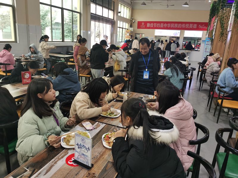 宣講完畢后,老師和團學干部們一起繼續開展餐間值守活動,監督促進同學們自覺養成“光盤”的好習慣。