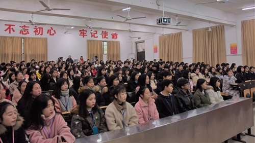田雨鑫富有內涵而又接地氣的演講引起學生的共鳴,他給師生們分享了三句話:第一句話“成為一個有價值的人,讓自己時刻被社會需要”,即流行語“我們得自帶流量”;第二句話“執著堅定做一件事,在任何一個行業沒有3年不能算入門,賽道沒偏就不要頻繁地平行跳槽”,即“充分利用twenty four seven(英文縮寫,24小時一天,7天一周)”;第三句話“推倒你內心的障礙是不甘人后的欲望”。緊接著田雨鑫詳細介紹了中泰宜佳的公司運營模式、服務理念、與我院的校企合作方式、康養服務操作實用技巧等,其風趣幽默的演講風格贏得了同學們陣陣掌聲。