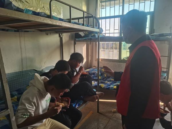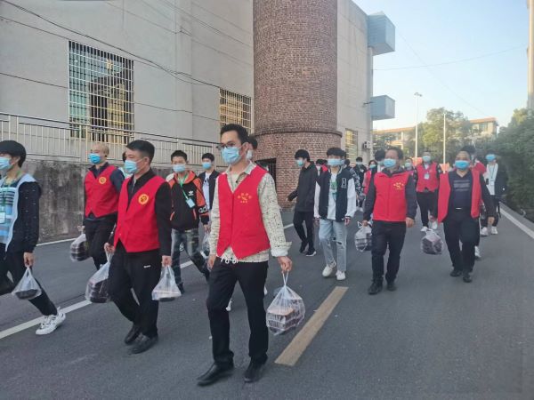 10月12日,黨總支組織全體在校黨員同志開展“隔離不分離,黨員送溫暖”志愿服務(wù)活動,為隔離在宿舍的同學們送餐送水,用關(guān)愛之心為學生做好思想疏導,在戰(zhàn)役一線展現(xiàn)黨員擔當和先鋒形象。