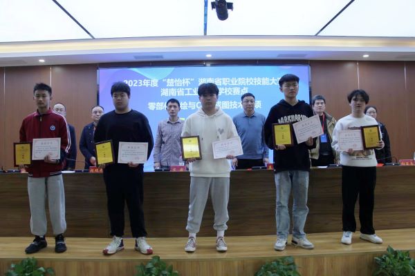 2023年度“楚怡杯”湖南省職業院校技能競賽零部件測繪與CAD成圖賽項中分別榮獲一等獎第二名和第三名。
