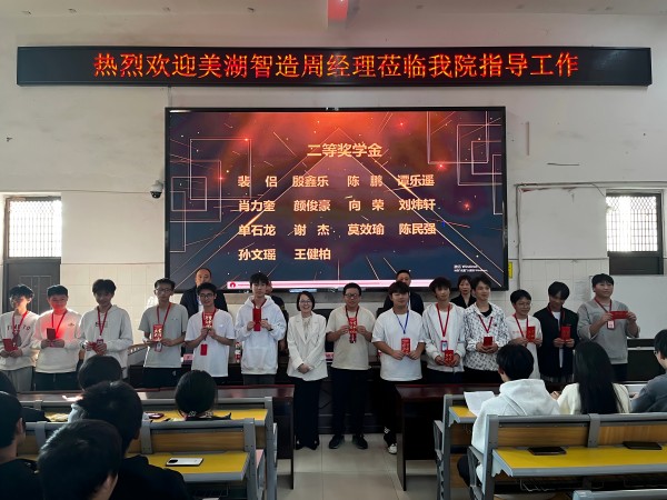 11月6日下午,我院在第一教學(xué)樓5樓多媒體教室隆重舉行了“美湖智造”定向班獎(jiǎng)學(xué)金頒獎(jiǎng)儀式。