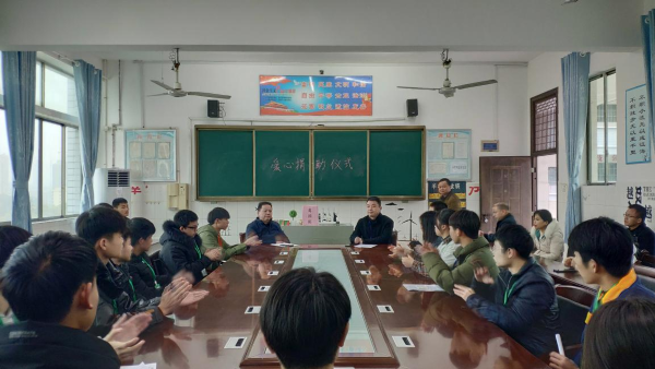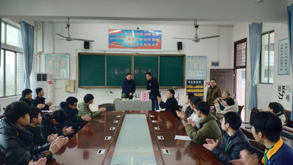 周少良主任代表機械系全體師生將愛心款項交付給盛俊凱同學的班主任譚慶能老師,并請譚老師代為轉達系部的關懷和祝福,祝愿盛俊凱同學早日康復,重返校園。