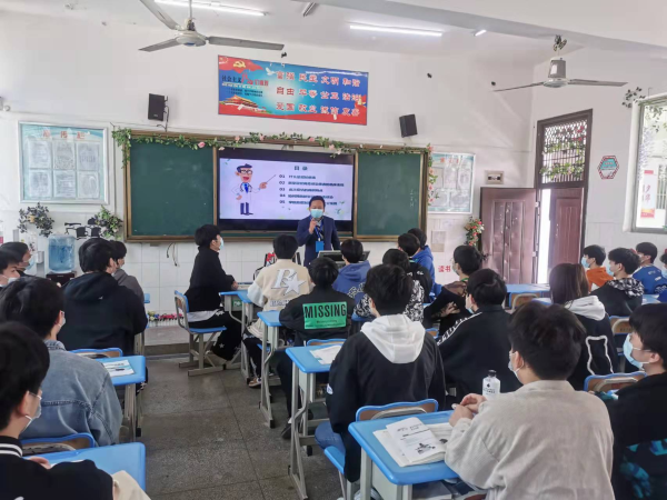 ▲黨員教師羅吒同志在19數控高技1班進行防疫宣講