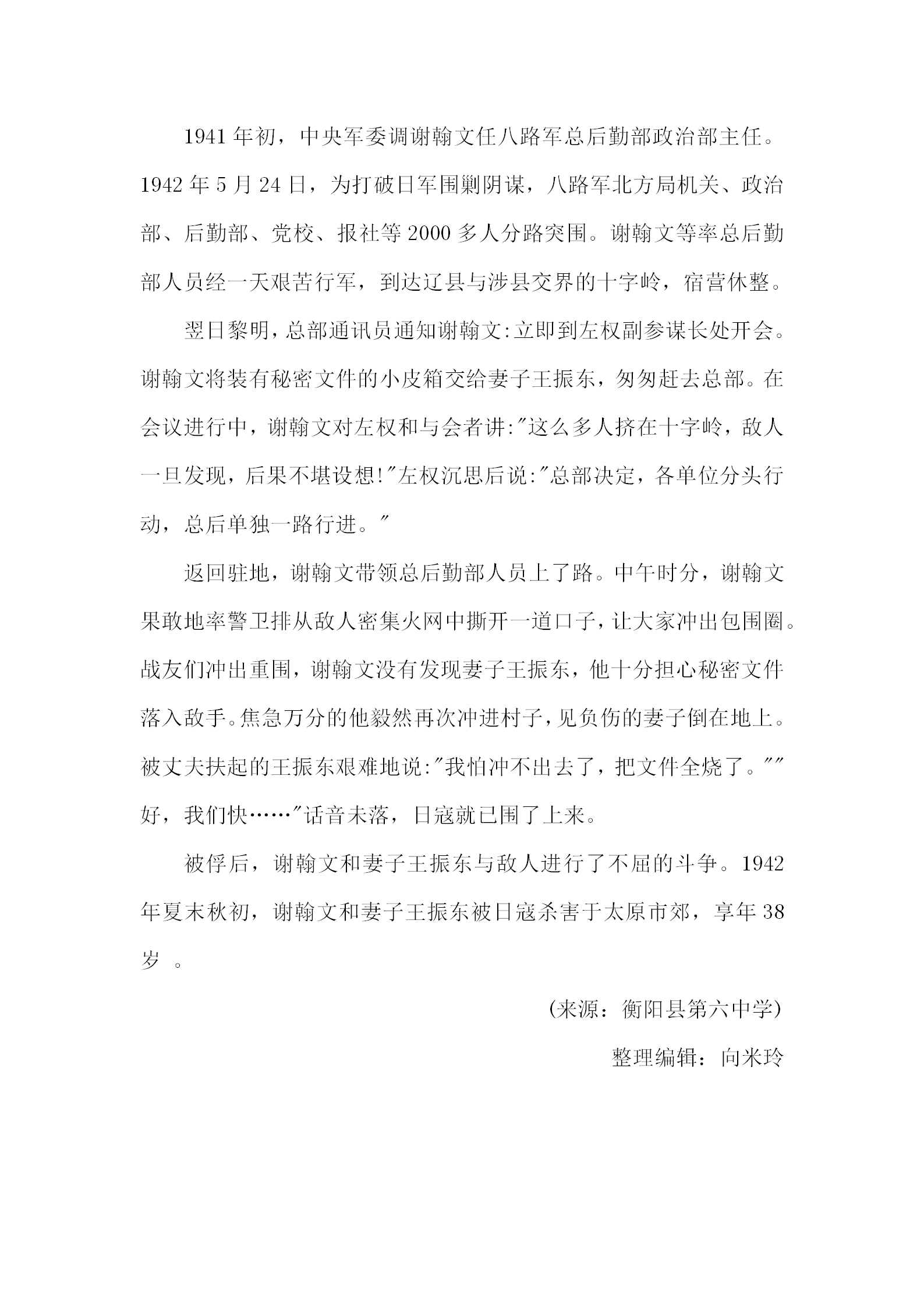 民族的抗日英烈——謝翰文