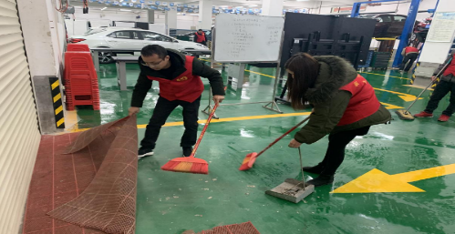 為讓同學們有一個干凈整潔的實訓環境,教師們分別從實訓中心處領取掃帚、拖把、抹布等清潔工具,分成四個小組在汽車實訓場地打掃衛生、擦拭車輛灰塵,規范工具擺放。