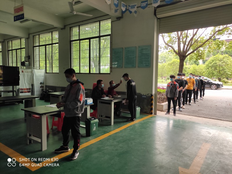 (學生逐一檢測體溫并消毒)