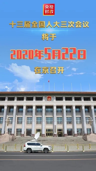十三屆全國人大常委會第十七次會議決定:十三屆全國人大三次會議將于2020年5月22日在北京召開。政協第十三屆全國委員會第三十五次主席會議建議:全國政協十三屆三次會議于2020年5月21日在北京召開。