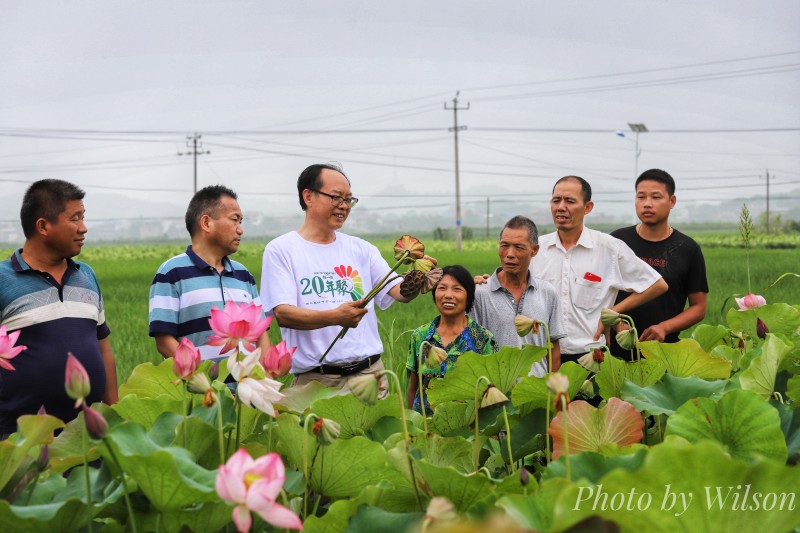 我系周鑒同志參加此次下鄉扶貧服務活動,在田間地頭為老百姓提供實實在在的蓮藕種植與病蟲防治技術。