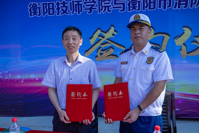 衡陽市消防救援支隊黨委班子成員,衡陽技師學院黨委班子成員,市消防指戰(zhàn)員代表,學院相關部門負責人及師生代表等參加簽約儀式。