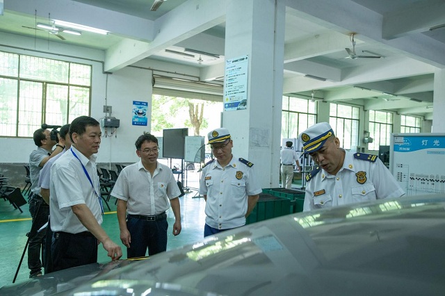 (與會領導參觀汽車車身修理實訓室)