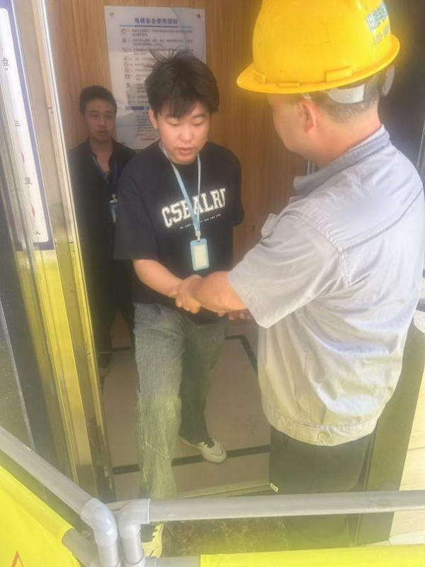2025年5月13日上午9:00時演練正式開始。電梯模擬出現故障被迫停運,三名乘客被困,受困人員按響電梯警鈴請求救援。電梯管理人員接報后,立即安排電梯維修人員和部門相關人員緊急趕赴現場,配合電梯維修工實施救援。