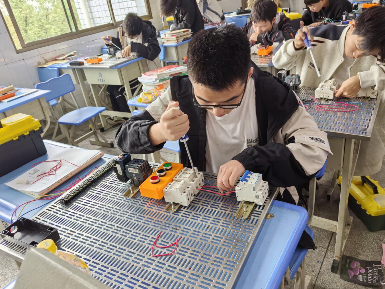 本次抽考班級是24 機電高技1 班,抽考的內容:接觸器點動及連續運轉控制電機運行。考試題目由教務處在實訓項目清單中隨機抽取,監考與閱卷由實訓中心和教務相關專業人員嚴格負責,確保抽考公平、公正、專業。