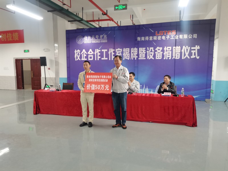 2021年10月21日,衡南得意精密電子工業有限公司與衡陽技師學院校企合作工作室揭牌暨設備捐贈儀式在衡陽市公共實訓基地舉行。衡南得意電子與學院模具設計與制造系建立了長期的深度校企合作,開展了教研教改、教學實習、學徙制、師資培訓、畢業生就業等方面的合作,這次捐贈了4臺套線切割機床和8臺工業用高配電腦等價值50多萬元,成就了產學研結合、深度校企合作的企業典范。