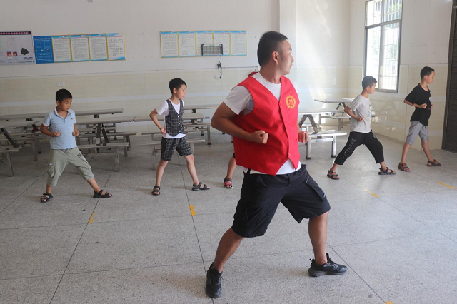 支教老師傳授孩子們五步拳拳法