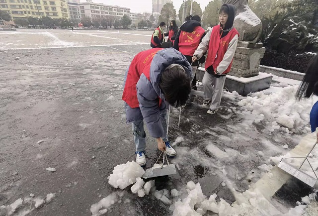 在活動中,即使凜冽的寒風(fēng)吹打同學(xué)們的雙手,同學(xué)們?nèi)砸燥枬M的熱情十足的干勁,有條不紊的進(jìn)行著積雪的清理,感染了每個路過的人,紛紛向青年志愿者們投去了贊許的目光。